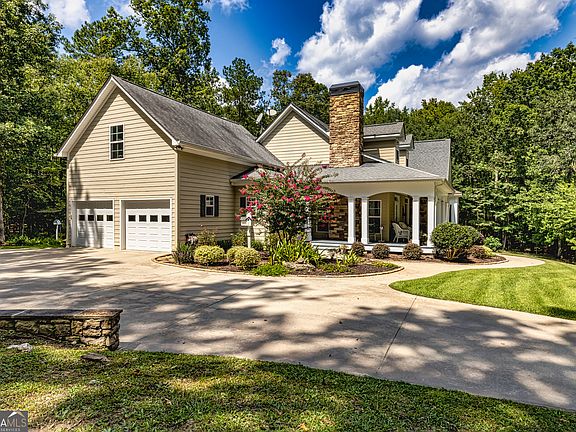 Welcome home to this 5000+ square footage stunning custom Southern Living Plan, The Moore's Creek, perfectly nestled on 27 picturesque acres. From the moment you turn down the private driveway, you'll feel a sense of peace and belonging. This charming home blends classic Southern architecture with modern comfort. Enjoy a spacious wraparound porch, perfect for morning coffee or evening hospitality. Inside, the open floor plan features a family-style dining room with fire place, an office or optional bedroom, and a family room with vaulted ceilings and exposed beams, rich trim work, and a unique wood burning with stone front fireplace that anchors the space. The custom kitchen offers a large island, breakfast area, and beautiful cabinetry. A nearby laundry room and powder room add convenience, while direct access to the porch and garage keeps everyday living easy. The garage's finished bonus space is ideal for a craft room, home classroom, or studio. The main level includes 3 bedrooms (1 currently an office) and 2.5 baths (two full and 2 half baths on the main), plus unfinished walk up attic bonus space for storage or future expansion. The terrace level provides additional living space with 2 bedrooms, 2 baths, kitchenette, a family room, workshop, and safe room-perfect for guests or multigenerational living. Outdoors, enjoy a barn, wood shed, scenic walking trails, fenced raised bed vegetable garden, and acres of peaceful countryside. This property offers a rare opportunity to experience true Southern living - privacy, charm, and elegance all in one. Flint River Academy is only 23 miles from the property if looking for the private school experience. It is also 6 miles from Senoia for a convenient shopping/dining experience.