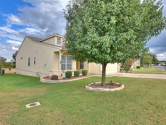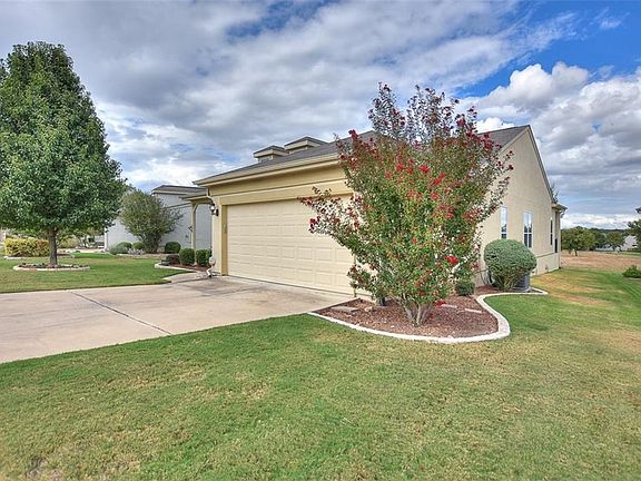 Stone-edged planting beds circle this Sun City Texas Magnolia backing a wide native preserve mere minutes from myriad activities of Cowan Creek Amenity Center and Golf Course. The home greets you with a Front Sitting Porch, not seen on all homes of this plan. Inside, you will notice Signature Standards upgrades, including stainless steel appliances, tile floors in the Great Room, taller upper cabinets, and even French doors to the Study. A sparkling glass-tiled back splash enlivens the Open Kitchen.