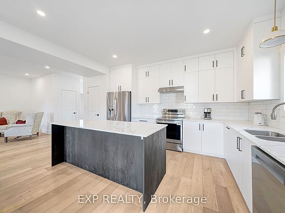 Welcome to 210 Morton Street - a modern 3+1 bedroom, 3.5 bathroom home designed with style, function, and versatility in mind. From the curb, the mix of stone and vinyl facades, covered front porch, and double-car garage set the tone for what's inside. Step into the open-concept main floor where an oak staircase makes a striking first impression. Upgraded engineered hardwood runs throughout, tying together the dining and great room spaces with the high-end custom kitchen. Here you'll find quartz countertops, a separate island, and plenty of room to cook, entertain, and gather. Upstairs, the primary suite is a retreat of its own with a walk-in closet and spa-like ensuite featuring a glass and tile shower, freestanding tub, and double vanity. Two additional bedrooms share an upgraded bathroom, while an upper-level laundry adds everyday convenience. The lower level extends the home's appeal with a self-contained in-law suite. Complete with its own entry, kitchenette, laundry, and a separate side door, it's a great setup for multi-generational living or generating extra income. Less than 2 years old, this home is truly move-in ready. With low-maintenance landscaping and a central Thorold location, you'll have quick access to St. Catharines, Niagara Falls, and Welland. Whether you're looking to upsize, accommodate extended family, or ease your mortgage with a rental option, 210 Morton Street delivers it all with modern finishes, smart design, and a flexible layout.