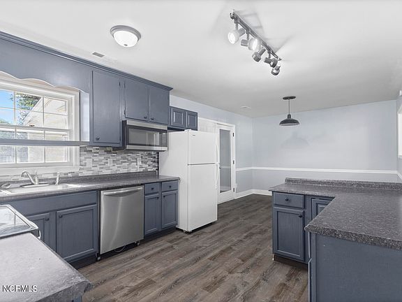 Don't miss this 4b/1.5ba beauty with plenty of room for gatherings or just a nice place to enjoy those quiet, Carolina evenings! Just updated with fresh paint and main light fixtures. Motivated sellers are offering $7,000 use as you choose funds to the buyers with an accepted offer to make the other details of the home their own! Step on up to the cozy front porch that would be perfect for a swing and enter the spacious main living area. It has a nicely sized kitchen with connected dining area to accommodate a variety of needs and a half bath on the main floor for convenience. Upstairs you will find four nicely sized bedrooms and a full bath. It is a Great location between MCAS Cherry Point and stunning Crystal Coast beaches! No city taxes or HOA! Fenced in back yard and natural privacy as well will certainly be enjoyed. Don't miss out on the chance to make this house your home.