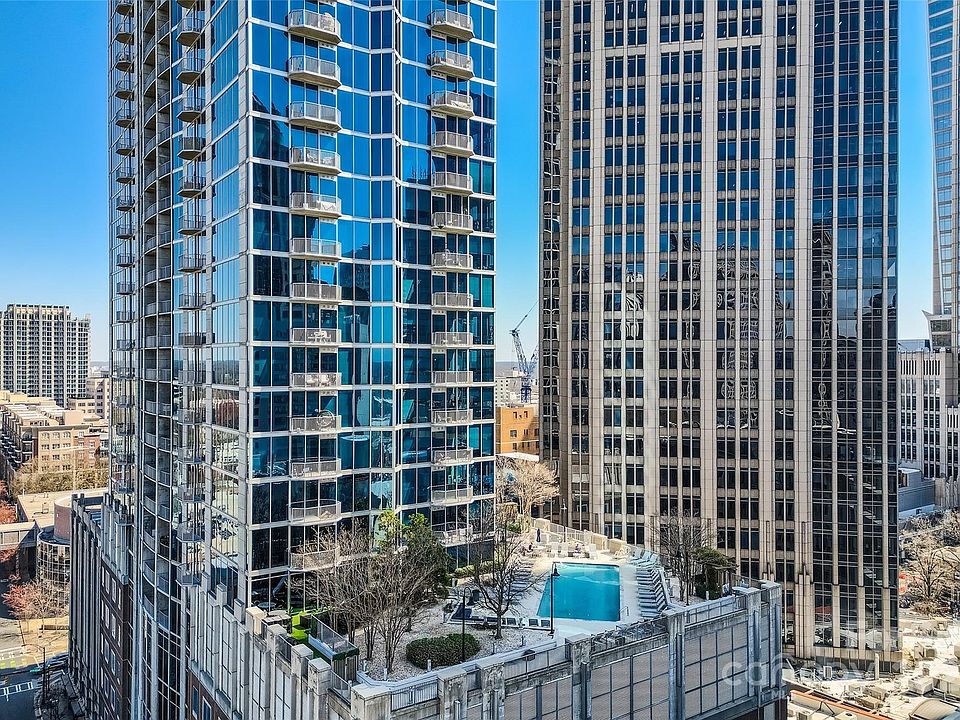 Welcome to your dream urban retreat in Avenue Condominiums, Uptown Charlotte! This stunning 2- bedroom, 2-bath condo offers breathtaking views of the city skyline from its 15th-floor location. The primary bedroom offers a fully renovated en-suite bath featuring a large walk-in tiled shower and contemporary dual vanities. Floor-to-ceiling windows offer picturesque views of the city, automated blinds and a custom built-in closet system complete the primary suite. New barn door adds charm to the guest suite. Renovated second en-suite bath boasts a stand-alone deep soaking tub. Enjoy an open-concept layout, sleek kitchen with stainless steel appliances including refrigerator. Washer/ Dryer also convey. Private balcony with great views! Avenue Condominiums offers luxurious amenities including a rooftop heated saltwater pool, fitness center and concierge service. Immerse yourself in the vibrant Uptown lifestyle with nearby restaurants, shops and cultural attractions all only steps away. This condo includes 2 deeded large parking spaces in the garage.