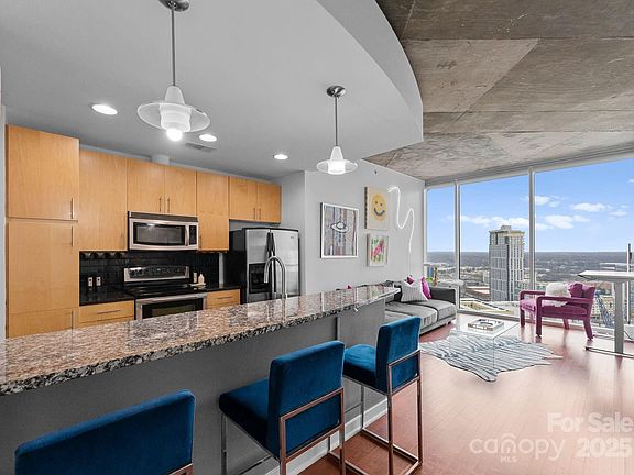 Own a piece of Charlotte's growing skyline! This pristine high-floor, corner unit at Avenue Condominiums features contemporary finishes while giving you the best of Uptown living. Situated in the Historic 4th Ward district, enjoy proximity to an array of cultural experiences, professional sports venues/events, and exciting dining options. The welcoming entryway leads to a bright, open-concept living, dining, and kitchen area. This unique condo provides a true 1-bedroom layout with a door and stunning city views! The spacious unit includes a modern kitchen with granite countertops, stainless steel appliances, and custom closets in the owner's suite. Enjoy a brand new HVAC, water heater, and electric blinds. The building boasts some of Uptown's finest amenities: a 24-hour concierge, secure access, clubhouse, billiards room, outdoor spaces with grill & fireplaces, a stunning lobby with a water-wall feature, an elevated swimming pool, a state-of-the-art fitness center. Welcome home!