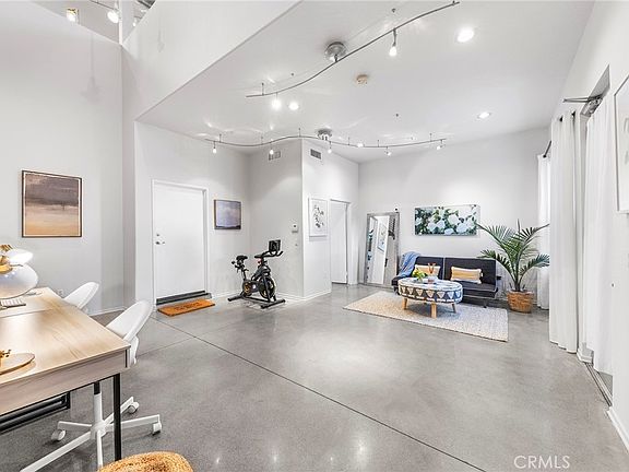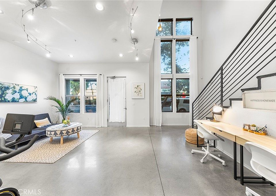 THIS IS THE LOFT YOU HAVE BEEN DREAMING OF!!! The Artist Walk Lofts are ideal for your living/office needs in Historic Downtown Santa Ana. Welcome to this Trendy home packed with High Quality Upgrades within walking distance to the most desirable California Top 10 High School - Orange County School of Arts. Steps through the front door and enjoy all this outstanding home has to offer. Soaring Ceilings in the main floor. Enormous Dual Pane Windows that Offer Lots of Natural Light, Polished Concrete Flooring, Custom roller Blinds, Exposed Duct Work, Designer Industrial-Style Fixtures & Accents, Recessed Lighting, Ceiling Fans, Newer Interior Paint, It Includes a Large Downstairs Studio or Living Room and Oversized Remodeled Bathroom, Plus Direct Access to Very Rare TWO-CAR "Finished" Garage with Storage Spaces.
