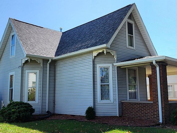 Welcome to this 1 1/2 story classic home. From the moment you step in, you will be welcomed by the abundant natural light, high ceilings, and beautiful woodwork & transom doors. The main floor offers a seamless flow for everyday life, with a living room, den/office with built-ins, kitchen with plenty of workspace, dining room with french doors, primary suite with walk-in shower & walk-in closet, and a conveniently placed laundry room to add to the functional appeal. The upper level offers 3 generously sized bedrooms and a full bath, providing comfortable spaces for family or guests. Relax on the enclosed back porch, enjoy the privacy of the back patio, or sit and talk on the open front porch. This home has so much to offer, including a spacious 2 car detached insulated garage, new roof on house/garage, gutters, gutterguards, downspouts, updated mechanicals, plus a great location! You will not want to miss out on this property, located a block from the golf course & within walking distance to schools, & local amenities!