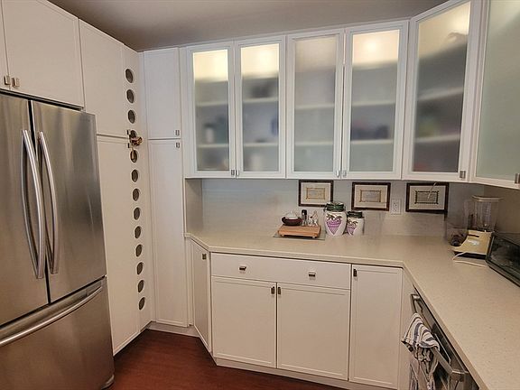 Fabulous 1 BR unit in Nahanton Woods. The recently renovated kitchen has gorgeous glass front cabinetry with lighting, SS appliances, a built in wine rack, and finishes with a breakfast bar. Kitchen opens to the generous living room with a beautiful wall of built in shelves and storage. Picture windows overlook the beautiful grounds. The LR leads to a private balcony where you can relax with your morning coffee and enjoy the quiet and scenic views. Master bedroom has ample closet space and a nicely remodeled master bath. Eco friendly cork flooring throughout the unit. Laundry in unit, and deeded garage parking. The amenities and facilities are superb - including an exercise room, club room, beautiful pool, and more. Plenty of guest parking always available. Perfect for downsizers, snowbirds, or Cape residents who also want a place in Newton.