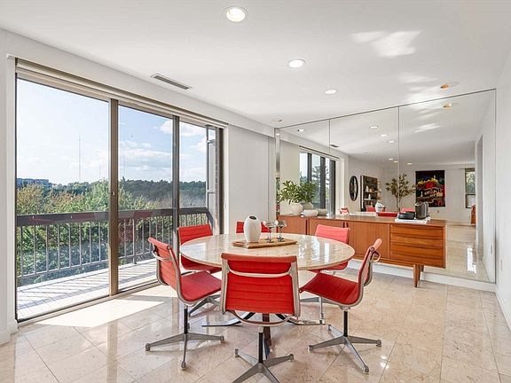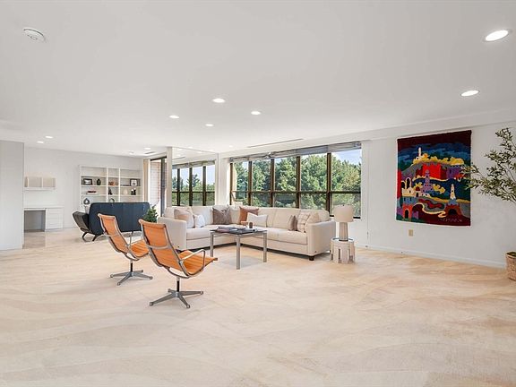 This beautiful corner penthouse, rarely available at Nahanton Woods, is resplendent with magnificent views of the grounds and beyond. The oversized entrance leads to expansive, open-concept space with a huge and elegant living room with large windows and two balconies, a gracious dining area, and an office. The kitchen has been updated and is appointed with handsome cabinetry, Sub-Zero refrigerator, and top-of-the-line appliances. There is a wonderful primary suite with a spacious bedroom, bathroom, and fully outfitted walk-in closet. There is a second large bedroom and full hallway bathroom that has been renovated. This home has 1 garage and 1 carport parking spot; lots of light, high ceilings, and abundant closet space. Nahanton Woods had a recent and exquisite interior renovation and is a professionally managed building that has many amenities including but not limited to a 24/7 doorman, pool, work out facilities, function space, and is convenient to Newton Centre and major routes.