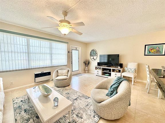 Welcome to the vibrant 55+ community of CENTURY VILLAGE EAST! This ground-floor retreat is all about relaxed living, featuring ceramic tile flooring throughout and a modern kitchen complete with shiny newer stainless steel appliances. The oven has never been used, and there's a separate faucet at the sink for purified drinking water, along with a recently installed garbage disposal. The bathrooms have been totally updated, and you'll appreciate the two new air conditioners purchased in 2022-2023, not to mention the stylish furniture, some of which is nearly new. Plus, it's just a stone's throw away from the pool! Credit Score 700+. NO Rec/land lease. Cash or conventional loan accepted.