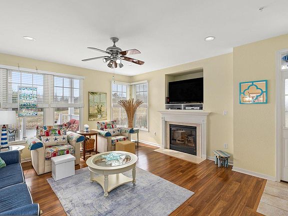 Welcome to tranquility! Step into the serene beauty of Bear Trap, where this fully furnished condo awaits you,. N,estled gracefully in front of a picturesque pond , complete with ducks for a scene of utter perfection. From the moment you walk in, you'll feel right at home, as the seller has adorned the space with tasteful neutral decor, ensuring a seamless transition into your new abode. Recent upgrades, including a top-of-the-line Carrier HVAC system and washer/dryer, add to this turnkey residence. Experience the convivence of one floor living, featuring three generously sized bedrooms and a invitingly open floor plan. The kitchen is a chef's delight, equipped with ample cabinets, expansive counter space, and a convenient breakfast bar. Sunlight streams in through numerous windows, creating a warm and inviting atmosphere, while the gas fireplace in the spacious living area adds cozy charm. Step through sliders onto the covered a screened deck, complete with updated dining area and storage, or unwind on the open deck, enjoying peaceful moments of reading while overlooking the tranquil pond. The primary bedroom offers a luxurious retreat, boasting a sizable walk-in closet and a newly remodeled ensuite bathroom featuring a custom walk-in shower with frameless doors and built-in shelving. Step out onto the private balcony for a breath of fresh air and scenic views. Parking is plentiful, including overflow spaces for guests, and there's even an open area for both canine and human play. Bear Trap Dunes Village offers an abundance of amenities, including two outdoor pools, one indoor saltwater pool ,clay court tennis, beach shuttle, a fitness center with brand new equipment, sauna, tot lots, basketball and pickleball courts. Golf enthusiasts will delight in the nearby Bear Trap Dunes Golf Club, featuring 27 championship holes across two challenging courses. Cap off your days with delectable dining and live music at the newly remodeled Coastal Kitchen- truly embodying the essence of coastal happiness. Welcome home to your sanctuary by the sea!