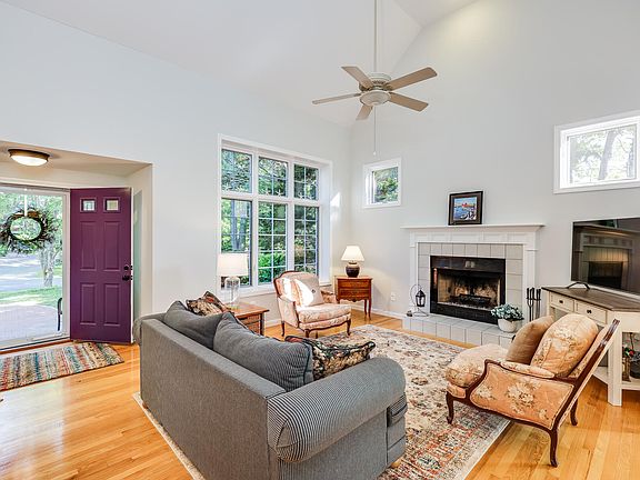 Discover the charm of this exquisite Cape-style home nestled in the desirable Olde Homestead Estates. As you step inside, prepare to be amazed by the grandeur of the living room, boasting soaring cathedral ceilings, an elegant open stairway leading to the second floor, a cozy fireplace, and gleaming oak floors that extend throughout both levels The formal dining room also features a cathedral ceiling, adding a touch of sophistication to your gatherings.The kitchen is a chef's dream with a delightful seating area with a raised ceiling, offering picturesque views of the Association Open Space. After a delightful meal, transition seamlessly into the sunroom, where you can indulge in even more captivating views.Experience the convenience of single-floor living with a spacious primary suite that includes a full bath boasting a custom tile shower and a generous walk in shower. Upstairs are two bedrooms, full bathroom and a bonus room. Enjoy the association beach at Crocker Pond. This home has been recently painted and is move in ready.