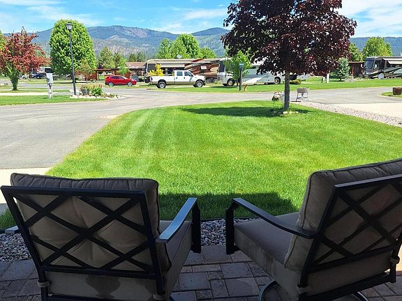 Private oversized ( 7000 sq/ft ) 'Class A Only' motorcoach lot with dramatic mountain views. Large landscaped lawns, both front and rear professionally maintained by the HOA. Property includes a large pergola ~55 x16 and a coach house ~ 11 x 14 (with an unfinished interior for your own set of plans). The coach house is plumbed, has a toilet, utility sink/cabinet, small water heater, and is plumbed for a shower. The coach house also has a new roof and will be freshly stained in the spring. There are 7 remote shades and a ceiling fan installed. Furniture includes a wicker living room set, a dining table that seats 6, rolling sideboard, 4 tilt/swivel chairs, outdoor rugs, a large TV mount, two patio heaters, 100 Amp power, Ziply Fiber highspeed internet and wireless security cameras installed.