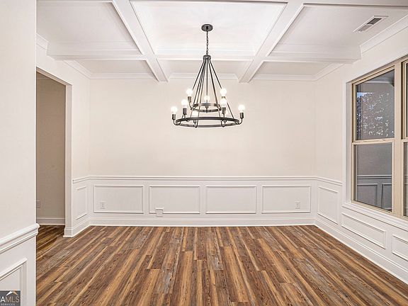 Welcome to this beautiful new construction home ideally located just moments from the vibrant shops and restaurants of McDonough's Town Square. Tucked away on a private lot with no HOA, this home combines modern sophistication with everyday comfort. The main level features an inviting open-concept layout perfect for entertaining. A spacious dining area flows seamlessly into the great room, highlighted by an elegant electric fireplace and abundant natural light. The gourmet kitchen is a true showstopper with white soft-close cabinets and drawers, quartz countertops, a subway tile backsplash, stainless steel appliances, and a walk-in pantry. Enjoy casual dining in the sunny breakfast nook overlooking the private, tree-lined backyard, or step outside to relax on the covered rear porch. Also on the main level is a bedroom and full bath that provide flexibility for a home office or guests. Upstairs, discover a thoughtfully designed layout featuring three additional bedrooms, including one with its own private bath. The luxurious master suite offers a spa-like bathroom complete with a soaking tub, separate tiled shower, double vanities, water closet, and a large walk-in closet. Completing the upper level is the convenience of a laundry room equipped with a sink and a cozy loft area providing the perfect space for relaxation or recreation. Modern design, a prime location, and no HOA - offers the perfect blend of style and convenience. Don't miss your chance to call this beautiful property home!