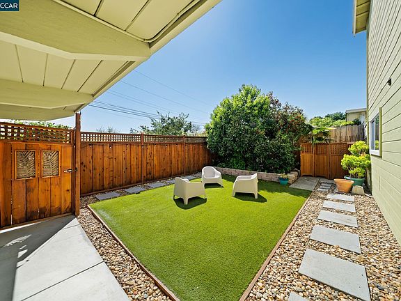 Modern elegance meets tranquil living in this stunning Eichler-inspired home. Spanning 1,692 square feet, this character filled home features three spacious bedrooms and three beautifully appointed bathrooms. The heart of the home is the expansive living & dining area, accented with floor-to-ceiling windows that invite abundant natural light & exposed wood beams. Relax by the cozy fireplace & enjoy the seamless connection to the outdoors through a private backyard, a true oasis for nature lovers. This serene space offers complete privacy with a zen-like ambiance, featuring a relaxing fountain, garden area, patio & newly installed turf area. Upstairs, the primary suite serves as a luxurious retreat with an ensuite bathroom & a walk-in closet. Step onto your private deck to take in the stunning views of Mt. Diablo. The lower level provides two additional bedrooms, including one with an ensuite & its own side entrance, perfect for flexible living arrangements. Comfort is ensured year-round with central heat/air. This property provides a harmonious blend of indoor luxury & outdoor serenity, making it the perfect sanctuary for modern living. Just 2 miles to Trader Joes, The Veranda & Target! Experience a lifestyle of sophistication & tranquility in this thoughtfully designed home.