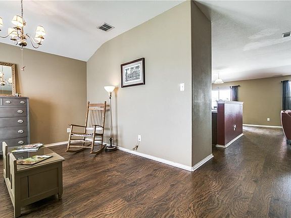 Awesome J swing garage, green grass and manicured flowerbeds complete the classic curb appeal! Neutral wall colors and warm wood floors welcome you home! Imagine your family relaxing and entertaining in the spacious, fire lit living area. Kitchen is organized and makes entertaining easy with breakfast bar and nice cabinets. Home features spacious master suite that is complete with spa like bath. Secondary bedrooms are spacious with room to grow and front flex room can be 4th bedroom, 2nd living area or formal dining room! Back yard has plenty of room to play with the dogs or throw the ball around! Welcome home!