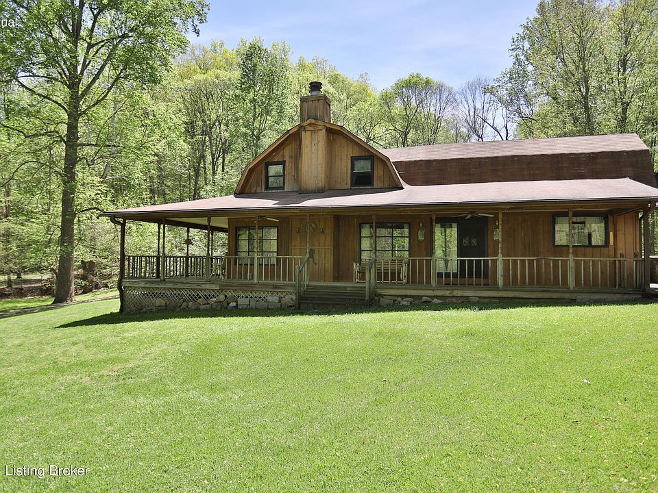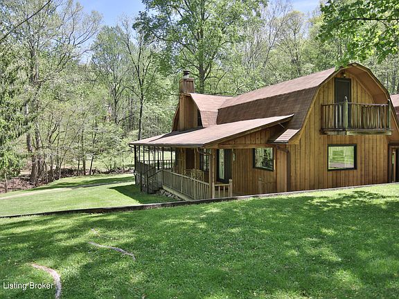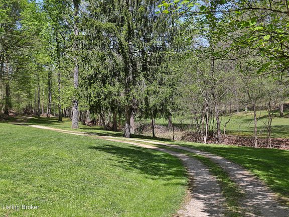 Hidden gem in Jefferson County! Check out this 29-acre property with large home with attached garage and a large two car detached garage with loft. This property is on Rayhill Rd right off of Mitchell Hill Road in Fairdale. A secluded property with a gate across the driveway, then crosses a small creek. The 3600+ home with a wrap about porch looks out over the acreage. The property backs up to Jefferson Memorial Forest, so adds to the secluded feel. The home is a one and half stories with a loft railing above the open great room. It has a large kitchen with a dining area, that overlooks the great room with a stone fireplace. There is a bedroom and full bath, and laundry on the main floor. The second floor has a primary bedroom with an attached bath that features a shower and claw foot tub. There is an additional bedroom on the second floor.