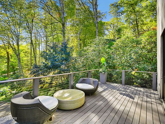 Welcome to 210 Red Fox Road, a hilltop sanctuary on a quiet Stamford cul-de-sac. This elegant home blends modern amenities with nature and outdoor luxury. Inside, enjoy gas fireplaces, balconies, sunlit living spaces, and a finished basement with a custom bar and walk-out sliders. Outdoors, multiple terraces, outdoor kitchens, and ambient lighting create the perfect setting for entertaining. A single condenser services three split systems. Additional features include ample parking, scenic views, and stylish finishes. Ideal for cozy nights or summer gatherings.