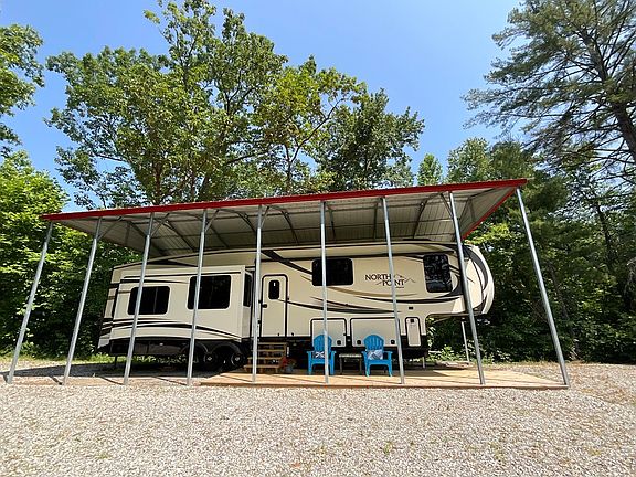 Perfect Mountain getaway! Everything included, Move in Ready! Gorgeous 2017 North Point Luxury Fifth Wheel sits on 1.01 acre with magnificent Mountain Views. Master bedroom with plenty of closet space and a king size bed. Double vanity sink in the spacious bathroom. Modern eat in kitchen with island. Cozy fireplace in the den with comfortable leather seating for 5. Central vac system. The fifth wheel is 42ft long and sits under a Covered Carport, new 8x24 ft deck. Warm up on those chilly mountain evenings outside by your fire pit. Plant a spring garden on your level lot w/ a bonus 8x10 Custom built shed. Laundry in the shed. City water, septic, electric, and high speed internet already in place. 50amp and 30amp service in place.