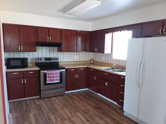 Nice 3 bedroom 2 bathroom mid-sized home, freshly painted inside and out, with new roof, covered front porch, large .43 acre yard with chain link fencing, large storage shed, decorative gas heater, and electric baseboard heat, new evap cooler, tiled and laminate floors, convenient location, within walking distance to stores, high school, etc.