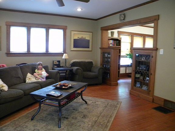 A classic Dutch Colonial home like this is hard to find. Extensive landscaping and perenials and a garden oasis with a dyed concrete patio on a park-like lot with trees that canopy the yard! Interior has been updated while preserving the authentic charm: crown mouldings, hardwoods, leaded glass cabinet! Updates include: kitchen, roof, barn with new floor, basement, attic and electrical service and concrete driveway. Detached garage. Bonus rec. room in barn that is sound proof. It's a charmer - Must see!
