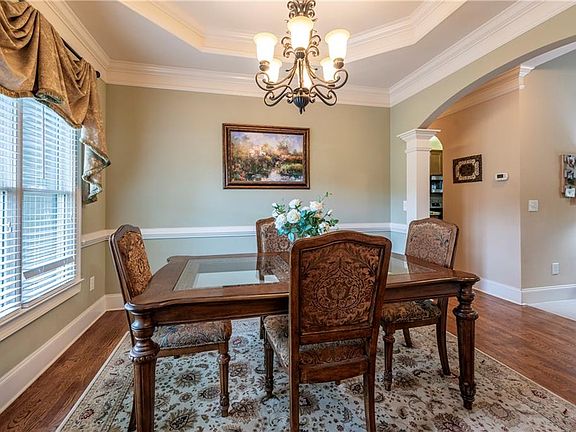 Modern fixturesHigh ceilingsFenced backyardCrown moldingHardwood floorsRefreshed kitchenOpen inviting layout