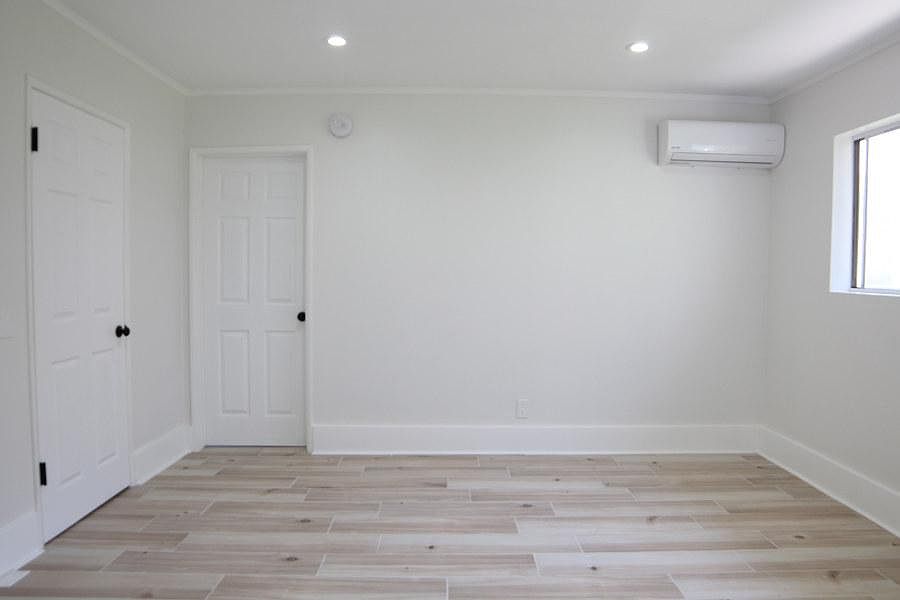 Beautifully remodeled 1 bedroom 1.5 bathroom unit in a four unit building. Bedroom has two walk in closets, one of which may be used as an office or additional living area as well as storage or a closet. Updated flooring, kitchen, appliances, bathroom, light fixtures, split AC systems in living room and bedroom etc. 1 car off street parking included. Laundry in building. Owner pays water. Non-smoking building. 1 year lease minimum. Tenants pay gas and electric.