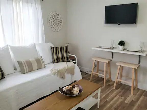 This suite is one of three in the building but is completely private with no shared interior spaces. Only the parking area and laundry are shared with guests from other suites. Enjoy a private entrance, a self-contained living space, and the freedom to come and go as you please.