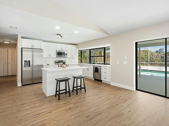 This beautifully remodeled pool home is move-in ready and offers the perfect blend of style and functionality. Step inside to find an open and inviting floor plan featuring brand-new luxury vinyl plank flooring throughout. The bright and modern kitchen boasts white shaker cabinets, quartz countertops, and stainless steel appliances, perfect for both everyday living and entertaining. The bathrooms have been tastefully updated with contemporary finishes, adding a touch of spa-like luxury. Additional upgrades include a new roof, ensuring peace of mind for years to come. Outside, enjoy your private oasis with a screened in pool--ideal for relaxing or hosting friends and family. Conveniently located near highways, top-rated schools, shopping, dining, and more, this home truly has it all.