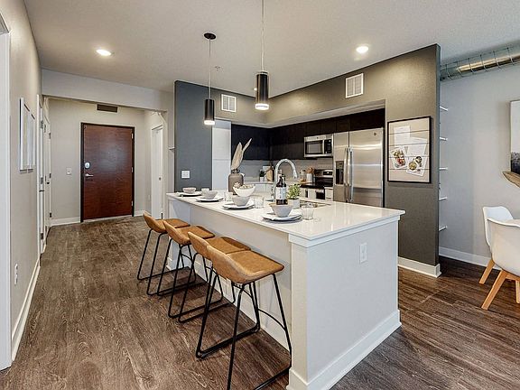 - Exterior features: Backsplash in every apartment home, Bicycle storage, ChargePoint Electric Car Charging Station, Conference Room, Entryway Drop Zone, Game Room, Kitchen Islands, Large Living Rooms, Near Access to Nature Trails, Near Shopping, Dining and Entertainment, On site retail, Open Concept Kitchen & Living Areas, Package Receiving, Pet Park, Poolhouse, Private Outdoor Balconies, Stainless Steel Appliances, Theater, Two-Car Attached Garages on Townhomes, Unique finishes, Valet Trash/Recycling Service, View Type: City-Skyline Views