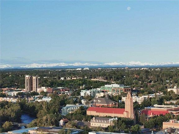 Unobstructed Rocky Mountain, Stampede, & Downtown Core Views. Idyllic inner city lifestyle living in the Beltline! One of the most accessible & convenient locations in Calgary directly across from the Stampede, Saddledome, & new arena! Featuring panoramic vistas with 270 degrees of view from this sunny corner unit. Views of both the Rocky Mountains as well as the entire Downtown core & Calgary Tower. Freshly renovated including all new designer chosen paint including baseboards & all trim, & luxury vinyl plank flooring. Over-height 9' ceilings and large windows throughout the unit. 2 generous bedrooms including spacious primary bedroom with walk-through closet & full ensuite bath. This unit offers 2 full bathrooms. Wrap around balcony with sunny Southwest exposure ensures maximum sunlight year round. Central A/C!. Dedicated storage locker & underground secure parking. Due to it's location, this is one of the highest grossing locations for rentals during Calgary's summer festivals & events as well as proximity to concerts & shows. Vetro offers full 2 level gym, hot tub, sauna, theater room, & full time security. Steps to the C-train, 17th Ave, Lindsay Park, & the river pathway system.