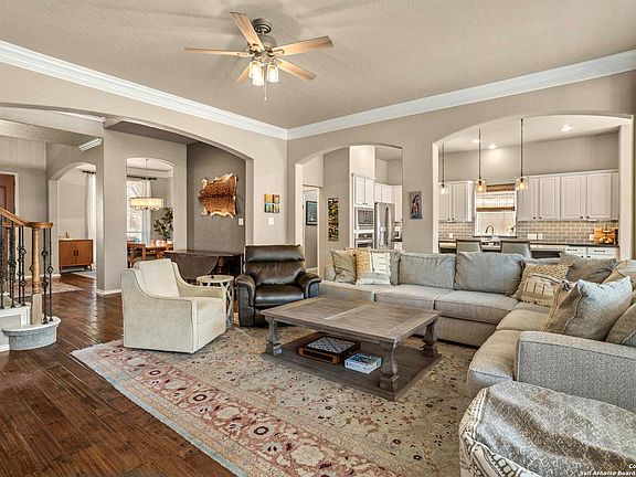 This meticulously maintained home offers the perfect blend of elegance and comfort. An impressive foyer welcomes you with beautiful wood floors, soaring ceilings, a formal dining room and a private study. The owner's suite is conveniently located on the main level and showcases large windows, a spa-inspired bathroom, and an oversized walk-in closet. The spacious living room overlooks the expansive backyard, complete with a composite deck and sparkling hot tub-perfect for relaxing and entertaining. The gourmet kitchen is a true showstopper, boasting a large quartz island, abundant cabinetry, leathered granite countertops, a butler's pantry/coffee bar, and stainless steel appliancces that are less than 2 years old. Upstairs, you'll find a versatile game room, media room, and three generous secondary bedrooms. Every detail of this home has been thoughtfully designed and impeccably cared for, making it truly move-in ready. With both A/C units and both water heaters replaced in 2023, you can enjoy peace of mind for years to come!