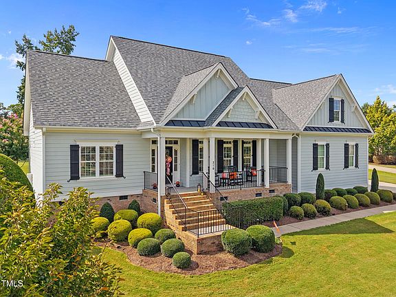 Welcome to a home designed for both everyday comfort and unforgettable entertaining. From the moment you step onto the inviting stamped concrete front porch with elegant iron rails, you'll feel the blend of charm and quality craftsmanship. Inside, gleaming hardwood floors flow through the foyer, dining, family, and kitchen areas, where a cozy gas log fireplace sets the perfect mood. The gourmet kitchen is a chef's delight with granite countertops, Jenn-Air appliances, a dual-fuel range with gas cooktop, a spacious island, and bar seating—ideal for gathering with family and friends. Thoughtful details like plantation blinds, a drop zone with built-ins, & a tankless water heater make daily living effortless. Upstairs, discover a bonus room, bedroom, and full bath, along with a media room complete with projector, wet bar, and fridge—perfect for movie nights and game-day celebrations. 3-Seasons room with stamped concrete flooring provides for ultimate relaxating. Retreat outdoors to your backyard oasis featuring a patio, firepit, and relaxing hot tub. The detached two-car garage doubles as a workshop with additional second-floor storage, while the irrigation system in the front & back yard keeps your lawn lush year-round. 4 Bedrooms, 3 full Baths, Dining rm, Breakfast Nk, Media room, Flex Room, Tons of Floored walkin Attic storage. This spacious home is move-in ready! Beyond the home, enjoy all that the coveted Portofino community has to offer, including an equestrian center, two sparkling community pools, seven miles of scenic walking trails, two beautifully appointed clubhouses, and a large pavilion for neighborhood gatherings. This home offers comfort in every corner—from the tiled baths and laundry room with cabinets, to the endless walk-in storage. Mounted Televisions to convey with acceptable offer. Washer, dryer, refrigerator, and even theater seating are negotiable, making your move-in a breeze.