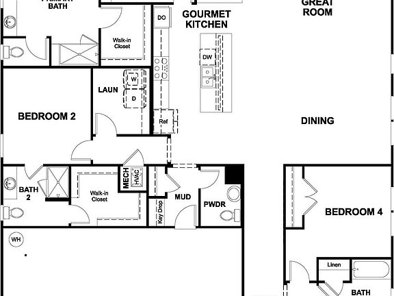 Center islandAdditional bedroomsLaundry roomGourmet kitchenSpacious great roomOpen dining areaPowder room