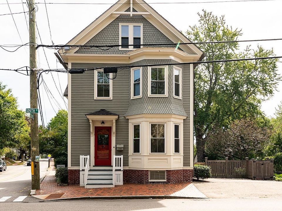Location, Location, Location! Welcome to Portsmouth’s South End. A popular, highly sought-after neighborhood. with its historic charm, natural beauty, and convenient location to the vibrant downtown. A short walk to Strawberry Banke, Prescott Park, the Waterfront, and Market Square! A spacious 3-story, 1,620 SqFt, 4BD/2BA home w/open first floor plan including a large welcoming Kitchen/Dining area, half Bath and generous Living room. Refinished parquet and maple floors throughout the first floor. The second floor has 3 generous Bedrooms and a full Bath. New carpet throughout second floor, hallway and stairs. On the third floor, a fourth Bedroom and Bonus room. The floors freshly sanded and painted. The eaves insulated and (one) sheet-rocked for added storage. 10' Ceilings and timeless Craftsmanship; from intricate wood trim, including bullseye rosettes to custom stained-glass windows, this home is a celebration of detail and artistry. A relaxing, private, fenced backyard with charming brick patios and manicured pocket gardens. A full Basement and Driveway for two cars. Broker interest