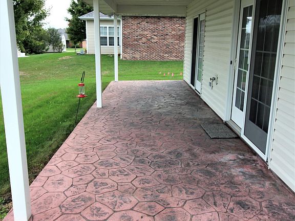 Enjoy the ease of main-level living in this gorgeous, well-kept rancher! A large entry to the spacious living room, with a cozy, corner gas fireplace & vaulted ceilings welcomes you home. The eye-popping, eat-in kitchen offers an abundance of cabinets & counterspace, slide out pantry, bar seating & tiled floors. Bringing in groceries is a breeze with the garage located close to the kitchen! A split bedroom plan offers privacy in the master suite with impressive walk-in closet (9'2x5) & private bath including step-in shower, double vanity, and corner jetted tub. Step out from the master suite onto the stamped concrete covered patio and enjoy your morning cup of coffee. The large level backyard is ideal for kids & pets. The floor plan is further highlighted with French Country painted