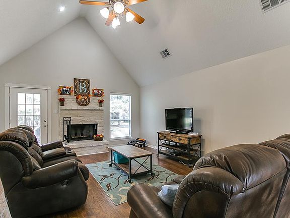 Adorable 1.5 story country home sitting on over an acre. Located in sought after Clear Creek Forest. Spacious front porch! Large master bedroom with beautiful windows looking out to the large yard. 2 guest bedrooms, spacious family room, open kitchen with breakfast area and formal dining. This home has gorgeous dark laminate floors, tile in kitchen and baths. Upstairs features a spacious media/game room. 2 car garage and shed in the back for additional storage. Water well!