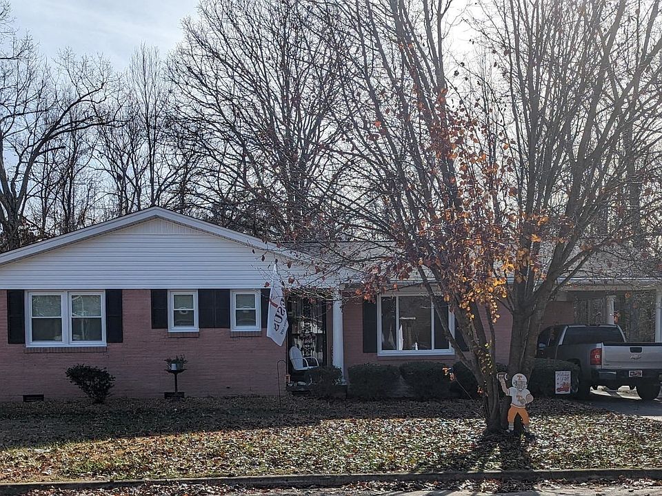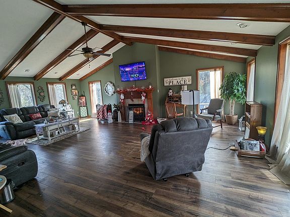 Brick 1742 sq ft, vaulted w/beams & fireplace 27x20 family, kitchen features island w/bar plus dining room, 3 bedrooms "1 w/its own fireplace". Roof less than a year old, replacement windows, paved drive back to second lot w/storage bldg, shop w/overhead door. 5 mins to middle & high school. Call today! You don't want to miss out on this one!