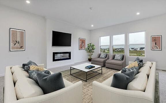 Incredible opportunity to rent 1 year old 5BR 3Bath single family home. This gorgeous open concept design features an island kitchen with stainless steel appliances, upgraded cabinetry, granite counters, generous size walk in pantry and walk-out morning room all open to the large family room with fireplace. First floor rec room and guest suite. Upstairs homeowners retreat with an en suite with dual vanity sinks, soaking tub, walk in shower and walk-in closet. Three additional bedrooms, each with a walk-in closet, a centrally located hall bathroom, loft and convenient 2nd floor laundry room complete the upstairs. Full, unfinished basement with a full bath rough-in. Attached two car garage. Street of Caledonia features nature play area with a water feature, community swimming pool, pickle ball & tennis courts, playgrounds, trails & more!