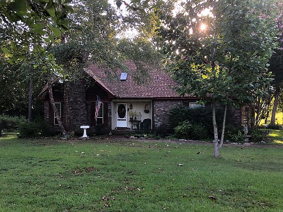 This home has great curb appeal and is very convenient to town, but far enough away to be a perfect location. Updated in the last 10 years with new engineered wood flooring, new roof, new 50 gallon electric water heater, new heat and air, insulated easy clean windows, and much more. The front entrance enters the living room which has a high vaulted ceiling with a tall fireplace (with insert). Stained glass windows stay with the property. The dining room flows from the living room and has a terrific view of the back deck and nature all around. The spacious kitchen has lots of cabinets and counter space . Jenn aire cooktop and double ovens. A great plus is the large window above sink that lets you look out while washing dishes and enjoy the beauty. A gorgeous sunroom, off the kitchen with brick walls has lots of gigantic windows. Wonderful place to have a table and visit with family. The access to the deck and back yard is from the two sun room storm door exits. The den room is the other entrance room off the side of the house and has a terrific pot belly stove that really helps you unwind on long winter evenings. Lots of windows, a coat closet, and the extra half bath that makes slipping in from outside to wash up, so easy. Off the den, and 3 stairs up, is the "Barn" room, 20'x20', with lots of windows, taller barn ceiling, split heating/cooling unit, bathroom complete with claw foot tub and ringer washer sink, kitchenette, and a great deck view. The separate entrance makes this a bonus area for guests, family visitors, mother in law, or start your own bed and breakfast. This room is located over the garage and has blown on insulation and wood floor. Down the hall from the kitchen is the under stair closet, pantry, smaller laundry room, and master bed and bath. The master bedroom is a nice size with an ample bi-fold door closet. The master bath comes off the bedroom and also has an access from the hallway. It has a shower/tub combo and two sinks. The stairway near the front door has oak treads and lovely banisters and leads to the 3 bedrooms upstairs. The smaller one has two skylights that make rainy days and starry nights so amazing. Off this room is a Bonus room perfect for crafting, sewing or a playhouse with slanted ceiling. The second bedroom is larger also with a good closet. The third room has more windows and a walk in closet. All the upstairs has laminate flooring. The upstairs bathroom has a tub shower combo and two sinks and there is a wall separating the two sections for less problems from bathroom hogs...Out side, there is ample parking for company and lots of room to play or relax on the gazebo swing. You can hear the sound of goats and chickens and, they could stay with the place if you want them. Gather the eggs each night from your own chicken house. The 14'x27' barn workshop is a perfect place for dad to putter around and listen to the ballgame while fixing or building something. A truck shed is connected to the workshop and is a perfect spot to put extra vehicles or your camper or boat. On the other side of the property is a terrific 10' x16' insulated She Shack that makes a great studio or storage. 3 years old and its well insulated with two windows. On the southside of the house is a smaller greenhouse made from recycled wood windows. It has a dryer vent into it for adding moisture to the plants and in the winter it stays pretty warm from the southern exposure. Start your seedlings early for those raised beds on the other side of the house. Fenced yard for dogs, chickens, and gopats. Mature trees make the backyard view so restful. This home also has a storm shelter, attic fan, and newer septic system. This place is amazing and it "is a great place to call home."