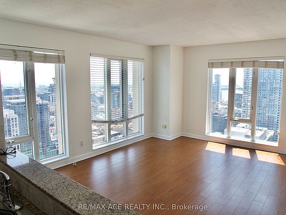Welcome to the Well Maintained Pentages Tower Corner Suite with Fantastic 270 Degree Panoramic South East Views Of the City & Lake. Above Standard 2 Bedrooms, 2 Bathrooms, wood floors throughout, Ceramic Floor in Kitchen, Floor to Ceiling Glass, Ensuite Laundry, Closet, 1 Parking Not Included With Rental Price, 1 Locker. Fabulous Location Steps To Eaton Centre, Subway, Dundas Sq, Toronto Metropolitan University (TMU), UofT & Entertainment District.