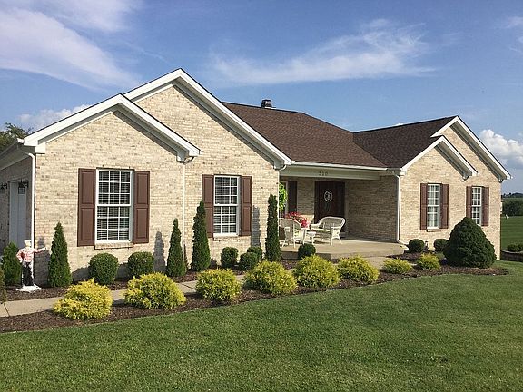 Nestled in a gated community offering a serene lifestyle this custom-built ranch home is very welcoming. This community offers the enjoyment of a 57 acre lake, walking trails along a creek and is surrounded by rolling hills. With almost an acre, relax on multiple decks and sitting areas. Upon entering the open foyer, appreciate a cathedral ceiling, five bright windows, and four elegant columns surrounding the dining room. Gather in the great room with family and friends around a stunning wood burning stone fireplace with a hearth. Entertain in style with a gourmet kitchen featuring wooden flooring matching the oak hardwood flooring and stainless steel appliances. Create an eat-in kitchen or a family room featuring a second cozy stone fireplace. The master suite awaits with a relaxing sitting area and a new-like bath with tile flooring, dual vanities, corner spa tub, a walk-in shower and a linen closet. The main floor has two more bedrooms and a full bath at the end of the hallway. Admire the gorgeous white-railed stairway to the basement giving this home another level of family living space. Take advantage of this extra space featuring tile flooring, a full bathroom, and extra living spaces with many possibilities. Entertain in style with the kitchen/bar cabinetry, sink, and large island. An unfinished 20 by 20 room boasts a long-electrical work bench/table ready for your hobbies, storage or convert to a finished living space. All bedrooms have beautiful carpet and generously sized closets. The side double garage boasts a large driveway. This home is all electric. The HOA is $110/month covering road maintenance, a pavilion area, a lake, and lagoon maintenance. For a small fee there’s a lot for RV and boat storage. This all brick home on a corner lot with easy first floor living in a country setting, makes this home unique just for you!
