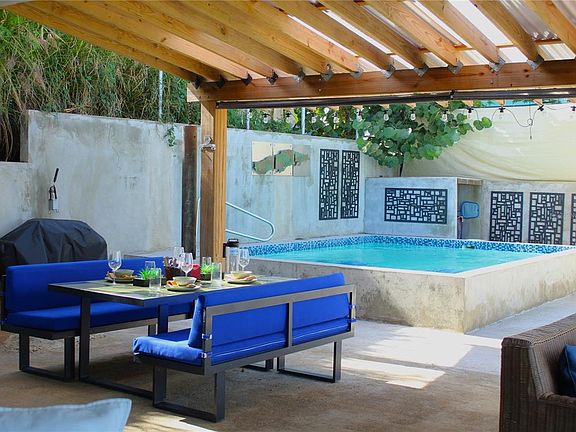 Welcome to Vista Bella, a stunning, brand new contemporary home featuring large plate glass windows offering breathtaking views. The focus of the interior of the home is a great room area encompassing a sizable kitchen, custom tile work with a 14-foot island, ideal for culinary enthusiasts, and a spacious living room divided into sitting and entertainment areas. An 18 foot-wide wall of glass provides uninterrupted views of the surrounding lush tropical island, and the every changing blue sea. There is a full bathroom on the main floor. The exterior living areas are equally magnificent with a lush swimming pool, a generously-sized outdoor covered patio area, and a sun deck surrounded by tropical gardens. Upstairs, the private areas of the home features dual Primary suites with spacious sitting rooms and plenty of closet space. Each en-suite bathroom has custom tile work, double sinks and large walk-in showers all boasting a modern, sleek design. There is an oversized single car garage and laundry room while also offering plenty of off-street parking. There is a full house generator for back up electric. Vista Bella is a rare offering on Vieques Island with brand new construction and represents one of the best opportunities to move in worry free.