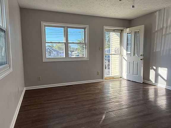 New primary ensuiteLarge blacktop drivewaySliding glass doorsSingle-story residenceCovered side patioEat-in dining areaSpacious backyard