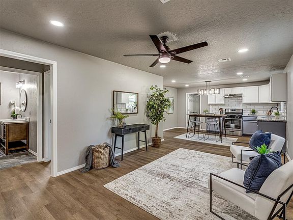 Back on the market! Don’t worry, it’s not us—it’s them. But hey, we’re ready to mingle with serious buyers! Step into this beautifully remodeled 4-bedroom, 2-bathroom home, featuring a spacious open layout and a desirable split floor plan with 1,420 sqft of living space. The home includes a convenient laundry room and an additional storage room off the laundry, providing ample space for your needs. Enjoy a large backyard, perfect for gatherings, along with the added security of a storm shelter. Recent upgrades include brand-new HVAC, windows, flooring, and fresh exterior and interior paint, along with modern lighting fixtures throughout. Relax this Christmas beside the electric fireplace, creating the perfect ambiance for the holiday season.