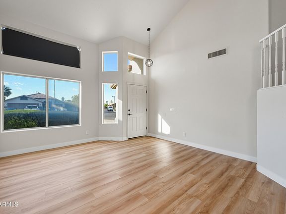 Bright, and open floor plan with formal dining and an eat-in kitchen. Spacious kitchen opens to the family room, perfect for entertaining. Features include a beautiful oak spiral staircase, vaulted ceilings, and plenty of storage. The primary suite offers a walk-in closet and double sinks. Enjoy the extended covered patio and the convenient location close to parks and schools.