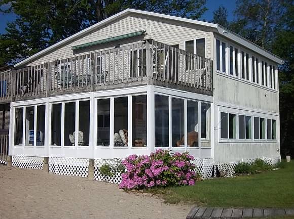 Bright and sunny first floor condo sitting right at the water''s edge ready for you to rent weekly for the summer season. Large sandy beach right out your door ! This condo comes complete with washer/dryer, large screen porch, 2 flat screen televisions and a full kitchen. 2 bedrooms all on the first floor with a queen bed in the master, a set of bunks with a twin bed in the second and a couch in the living room that opens up to a double for your extra guests. This condo is great for guests that prefer everything on one level. Perfect location is sit either on the porch or in the living room and view the lake and watch its activity.