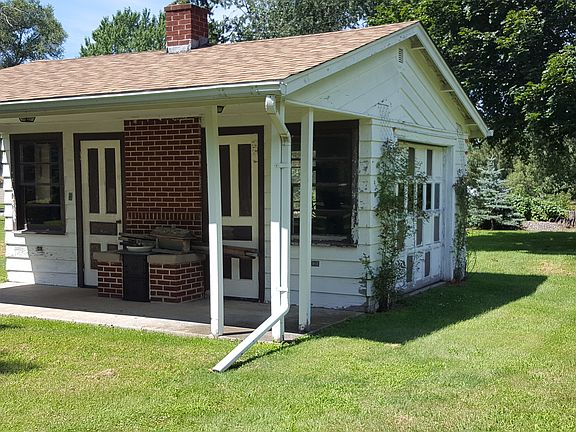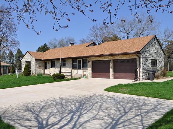 All lannon Stone Ranch on almost an acre of land in Quiet village close to the Broadlands Golf Club. Nice sized living room has large picture window and cozy natural fireplace. Eat in kitchen has dinette area with extra built in cabinetry. Enclosed breezeway and great sun room space for relaxing and entertaining. Home has two nice sized bedrooms and one bathroom. Full basement has plenty of room for storage. Two car attached garage. Large garden shed is perfect for storing yard equipment or a great space for hobbyist. Backyard has large grass area and mature trees. Low maintenance gorgeous stone exterior. Seller has freshly updated interior paint, carpeting and flooring. Move in and start enjoying small town life right away! Easy Hwy 59 commute.