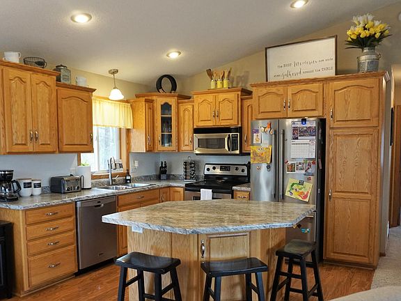 Welcome to this spacious home located in the Rocori School District with no backyard neighbors and lots of privacy!!The upper level features an open floorplan,vaulted ceilings, 2 main floor bedrooms with huge walk in closets, and a large 3 stall garage with built in storage and a work bench. You will love cooking in this kitchen, it has plenty of cabinets & counterspace & a large center island. The Dining room is steps away with a walkout to the spacious deck overlooking the backyard & swing set! The Generous sized living room has plenty of room to relax & enjoy. The lower level has a large family area with walk-out to the backyard and patio, 2 more bedrooms, lots of storage space, laundry room, and another bathroom. All of this located within walking distance to the local park and downtown Rockville. The property is located in a desirable neighborhood w/mature trees, and is conveniently located right off Hwy 23 & minutes from I-94.