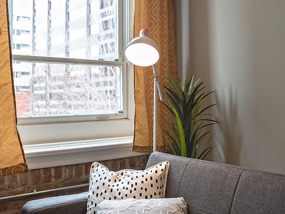 Beautifully renovated, downtown, luxury, one bedroom apartment featuring central air, gas heat, security system, full kitchen with quartz counters, stainless appliances, washer/dryer in unit, exposed brick and hardwood floors. Designer guided finishes.