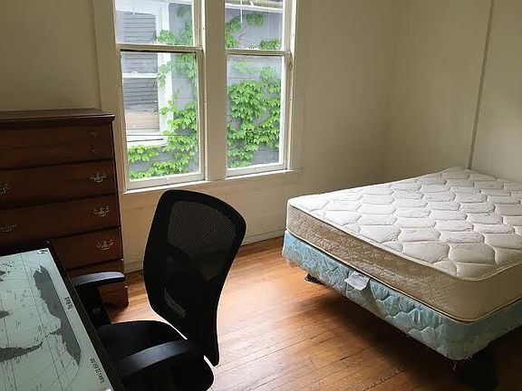 Built-in microwaveHigh ceilingsPrivate bathHardwood floorsLots of windowsGorgeous bay windowCommon bathroom