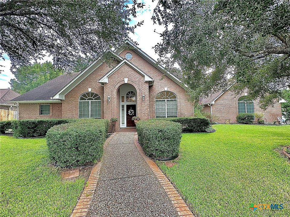 Rare opportunity awaits you in prestigious Benchmark subdivision! Generously laid out with four bedrooms and four full bathrooms, split bedroom plan, and multiple living and dining areas, plus additional study that can easily be transformed into a fifth bedroom. Natural woodwork accents throughout add warmth and timeless comfort, and adding the perfect blend of luxury and sophistication. Gourmet kitchen with center island and eating bar, accented by stainless steel appliances and superior granite countertops. Perfect for entertaining inside and out, offering a pub style wet bar in the living area, and courtyards and sparkling pool in the manicured backyard. Situated on almost a half acre corner lot, this estate gives you a wonderful blend of comfort, space, and style - ready to be your forever home.
