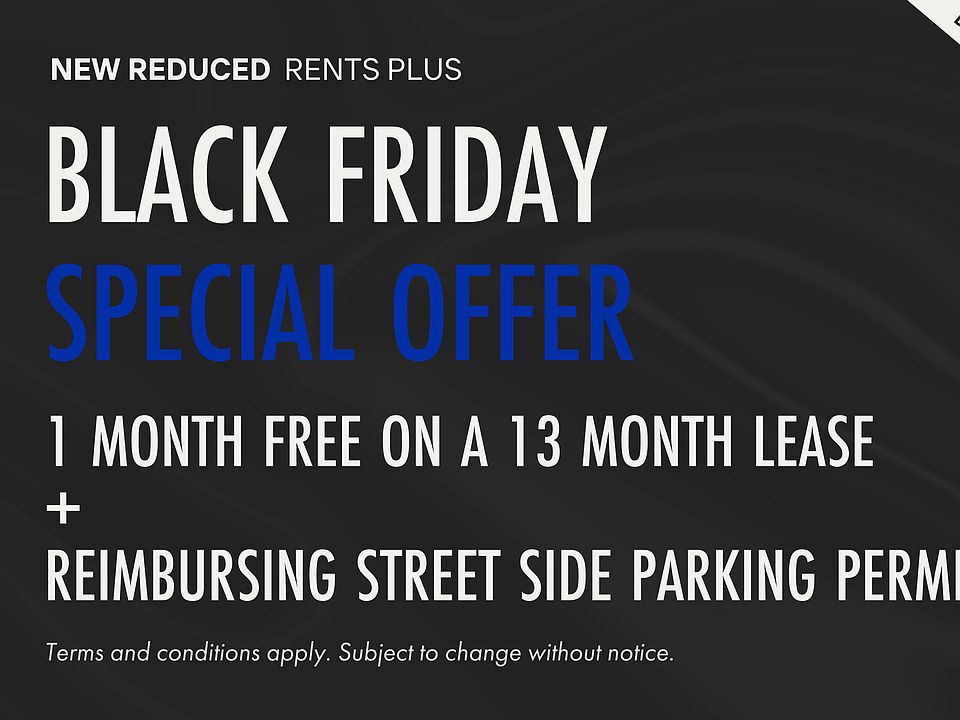 - Special offer! Limited Time Offer: Get 1 Month Free with a 13 Month Lease + Reimbursement for Street Side Parking! - *Offer valid on select suites. Additional terms and conditions may apply.
